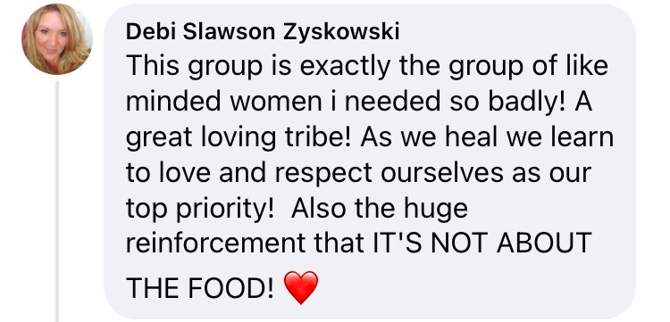 I will say that this has been life changing work for me. Between the education, the support, the other women, and of course, Dana, I finally feel like I have a path forward that serves ME. Game changer. Especially knowing bariatric surgery didn't give me all I was hoping for.